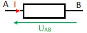 La tension U AB entre deux bornes d'un récepteur faisant passer un courant électrique I est :