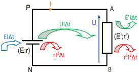 (r+r').I 2 .∆t : l'énergie calorifique dissipée dans le circuit.