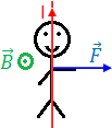On considere un observateur allongé dans la direction du conducteur ,de tel sorte que le courant le traverse des pieds vers la téte. et son oeil regarde la direction du champ magnétique 𝐵. ddonc sa main gauche pointe dans la direction de la force magnétique F
