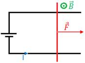 Puisque : α =90° alors : F=I.l .B . Ainsi la tige se déplacera de gauche à droite selon les deux coups.