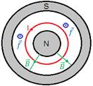 * Afin de conserver le même sens de rotation, le sens du courant électrique doit être inversé à chaque fois que le rotor effectue un demi-tour. C'est ce que font le groupe [les deux les balais (brosses) ; collecteur (réflecteur)].