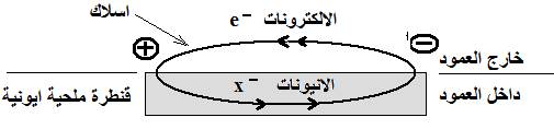 - تحرير الالكترونات تنتقل عبر السلك فتصل الى النصف الثاني للعمود