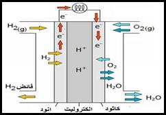 - يصل H2 إلى الأنود فيتأكسد
