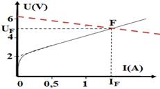 نرسم مميزتي ثنائيي القطب في المعلم نفسه و باستعمال السلم نفسه , تمثل نقطة التقاء المميزتين نقطة اشتغال الدارة F(IF,UF) .