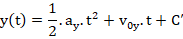 On remplace dans l'expression d'ordonnée y pour obtenir l'équation de trajectoire suivante: