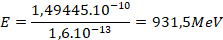 E = 1,49445.1 0 - 10 1,6.1 0 - 13 =931,5 MeV