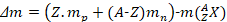 الفرق بين مجموع كتل النوياتΔ m = Z . m p +( A - Z ) m n - m ( Z A X )