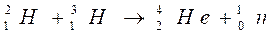 - تفاعل نووي يتم خلاله انضمام نواتين خفيفتين لتكوين نواة أكثر محررا الطاقة.مثال: معادلة تفاعل