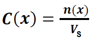 On appelle, concentration molaire C(X) en soluté apporté d’une solution aqueuse de ce soluté, le rapport entre n(X) la quantité matière de soluté dissous et Vs la volume totale de la solution