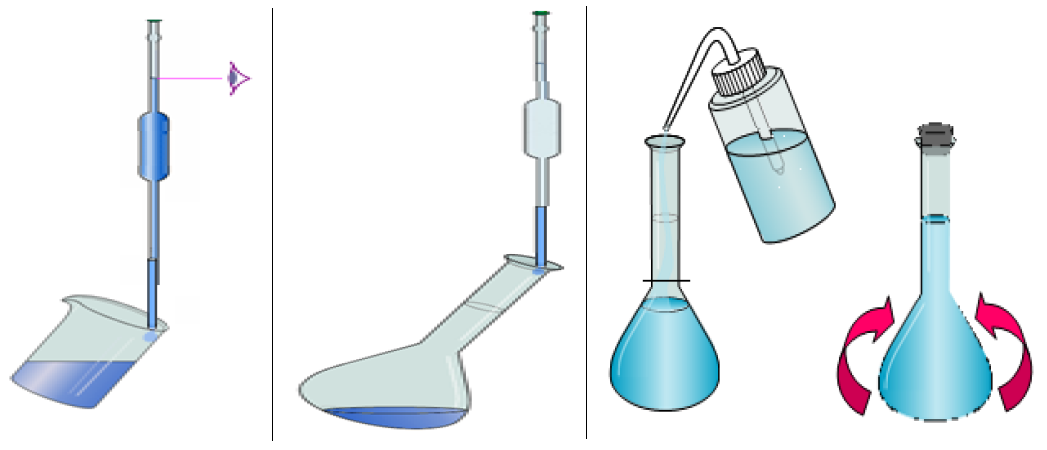 * Verser la solution mère prélevée dans une fiole jaugée de volume adapté