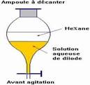 Puis ajouter délicatement le solvant (hexane ou pentane : solvant organique : liquide incolore moins dense que la solution aqueuse et non miscible)