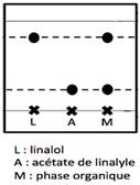 Le mélange synthétisé contient de l’acétate de linalyle car il y a une tache du dépôt de phase organique qui a le même rapport frontal que l’acétate de linalyle pur.