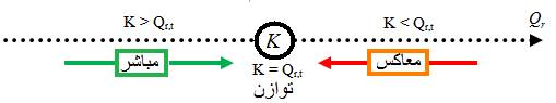اذا كان K > Q r,t تتطور المجموعة الكيميائية في المنحى المباشر حتى تصل الى حالة التوازن