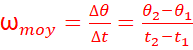 نعبر عن السرعة الزاوية المتوسطة لنقطة M في حركة دائرية بين الموضعين M1 و M2 بالعلاقة :