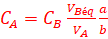 نعلم أن: ni(A)=CA.VA و ni(B)=CB.VBéq
