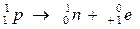 La transformation d'un proton en neutron à l'intérieur du noyau selon l'équation suivante: