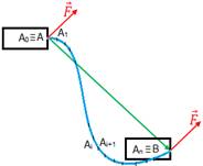 Nous divisons le chemin courbe en petites parties qui peuvent être considérées comme droites.