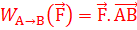 où: AB >0 F >0 ; -1<cos(α)<1 ;On dit donc que le travail d'une force est une expression algébrique et que son signe est lié à la valeur de l'angle α .